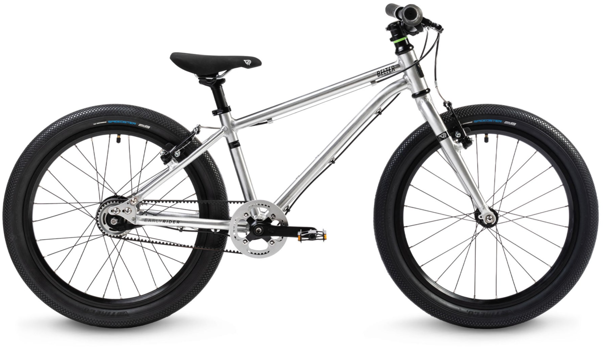 The Belter 20 runs 1.95”, fast rolling tyres as standard, so that developing riding skills is made easier, safer and more enjoyable than the 1.5" tyres typically found on kids bikes. Their extra volume and grip provide added control over the lumps and bumps and give the cushioning that makes riding more enjoyable. 1.95” tyres are also much more stable, especially in tricky conditions. With a bike that is more stable, you can shorten the rear triangle, and that improves handling and manoeuvrability making the bike more capable still.